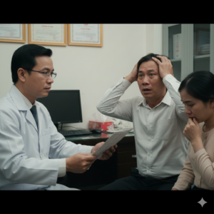 “Bác sĩ ơi, em xin lỗi, lúc nãy em nghe bác sĩ nói chuyện với vợ em… Thế nguyên nhân thật sự là do chuyện ấy ạ? Lần sau em sẽ cẩn thận hơn, em… em sẽ kiềm chế…”