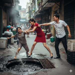 B/ồ xô vợ ngã xuống hố nước thải bốc mùi và hành động khôn g ngờ của người chồng